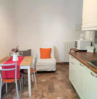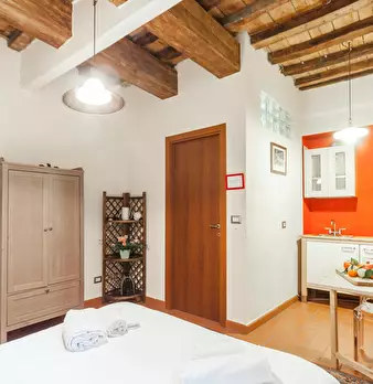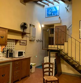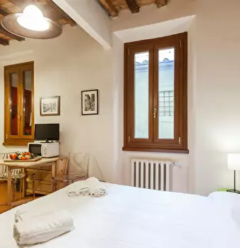The apartment is a studio with a queen bed. A bathroom with shower and a kitchen corner with microwave, stoves and fridge; wifi, tv and air conditioning. The apartment is at first floor of an ancuent building located next to Dante Alighieri house.