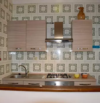Caletta - Appartamento trilocale, di 60 mq a soli 50 mt dal mare, in AFFITTO SOLO PER LA STAGIONE ESTIVA. In palazzina a schiera, con ingresso indipendente dal giardino piastrellato, posto a piano terra e composto da: cucina/soggiorno, divano...