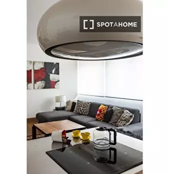 Scopri un confortevole appartamento con una camera da letto nel Quartiere della Vittoria, a Roma. Questa proprietà è completamente arredata e dotata di comfort come aria condizionata centralizzata, lavatrice privata, cucina attrezzata con forno e ...