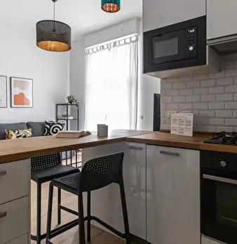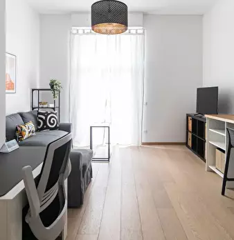 Questo grazioso appartamento con una camera da letto è completamente arredato e attrezzato per uno stile di vita confortevole. L'appartamento dispone di ascensore, aria condizionata individuale, lavatrice privata, forno, TV e cucina attrezzata. In...