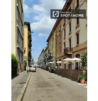 Questo appartamento arredato con una camera da letto a Lorenteggio, Milano, offre un confortevole spazio abitativo completo di riscaldamento centralizzato, WiFi incluso e una cucina attrezzata con lavastoviglie, forno e lavatrice, condivisa con gl...