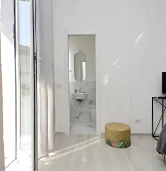 Spazioso bilocale finemente arredato e appena ristrutturato con terrazzo privato, situato al piano terra all'interno di un condominio residenziale nel cuore del quartiere Greco. Ingresso su zona giorno con cucina a vista, camera da letto e bagno ...