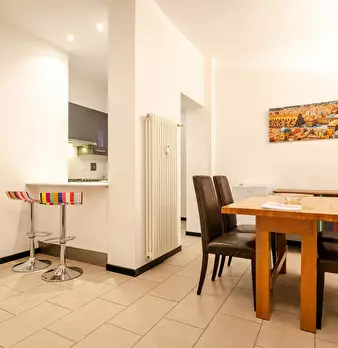 Nice studio of about 43 sqm, located on the first floor without an elevator, featuring: a living area with a kitchen and a sofa bed, a sleeping area with two single beds, and a bathroom with a walk-in shower. Overlooking a historic street in the h...