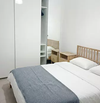Nice two-room apartment on the ground floor of a typical Bolognese building. The apartment has a bedroom with a double bed, a small kitchen with dining area and a bathroom with walk-in shower. Guests have access to TV, washing machine, stovetop, o...