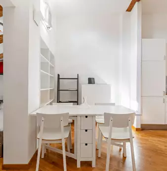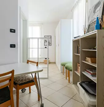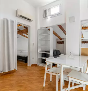 Modern and charming apartment of about 50 sqm, located in the heart of the historic center of Bologna. The apartment is on the third floor without elevator and consists of: living room with dining area and kitchen, bedroom with double bed, small b...