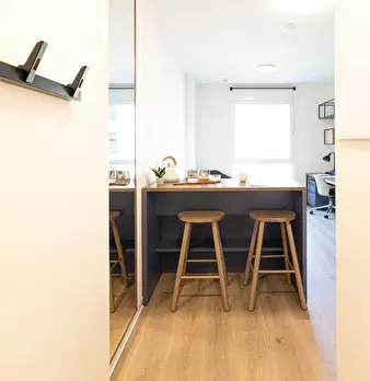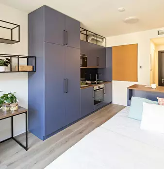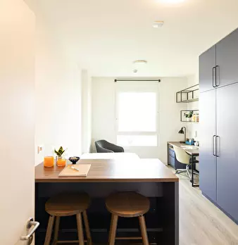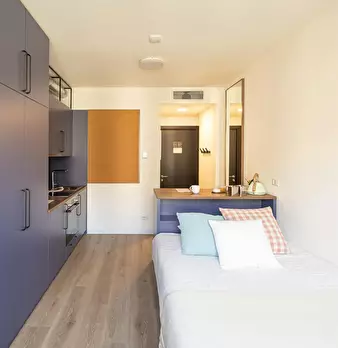 Smart Studio is an apartment unit of approximately 19 square metres in total, with a private bathroom and kitchen. Features: - The ideal solution for your study years - Floor: 0°-3° What will you find in the room? - 120x200 cm bed - Desk with st...