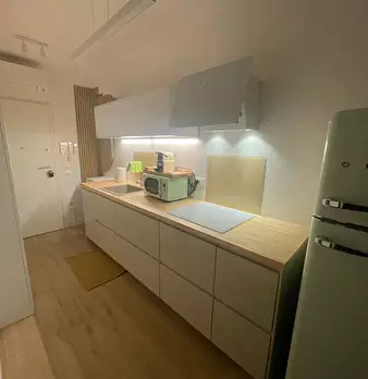 Modern and bright studio on the third floor with elevator, with double bed, large balcony and bathroom with shower. The kitchen is fully equipped and offers a refrigerator, freezer, oven, stove, microwave and dishwasher. The apartment has air cond...