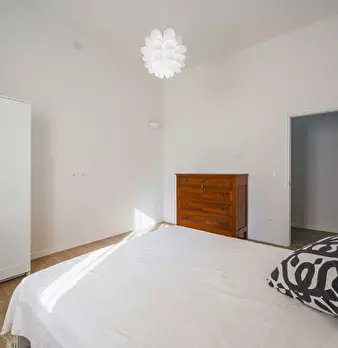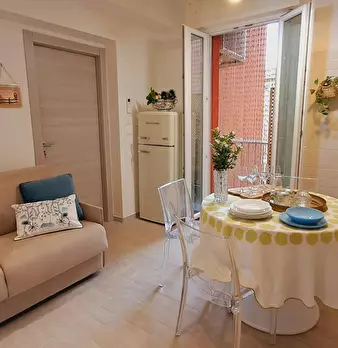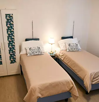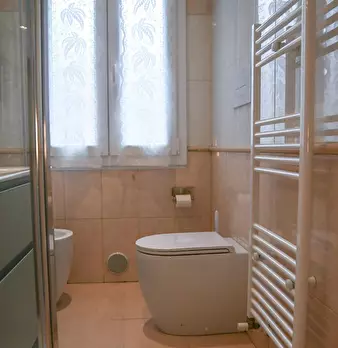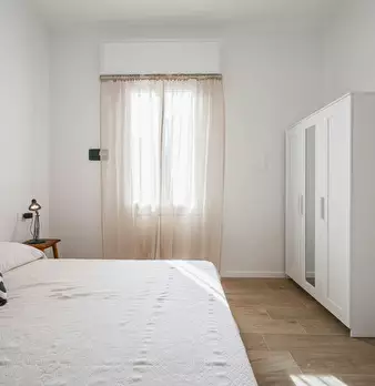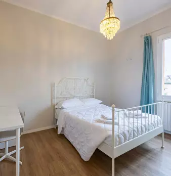 Ampio trilocale camera con letto matrimoniale, camera letto castello e divano letto in sala ,tavola , 2 bagni, zona ben servita da bus in centro storico con possibilità di parcheggio sotto casa a pagamento