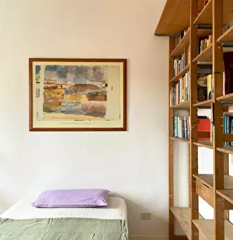 Elegant Attic Apartment with Fireplace Located on the fifth and top floor of a refined building with elevator, just three kilometers from Bologna’s center, this cozy attic combines charm and comfort. Delicious attic studio for 1-2 students, full...