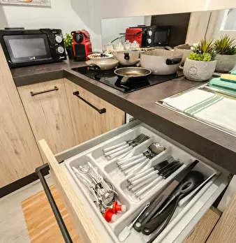 Nice studio located on the ground floor and composed of entrance to a fully equipped kitchen, study area with sofa bed and mezzanine with double mattress. Bathroom with washing machine and shower. Unlimited wifi internet All the bills are include...