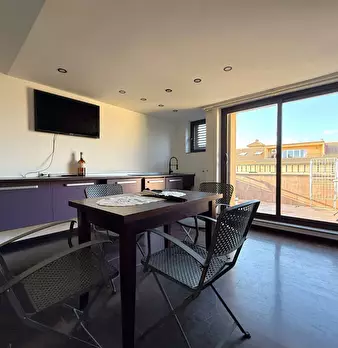 A Catanzaro Lido, in zona residenziale adiacente viale Crotone, mansarda arredata completa di elettrodomestici posta al quarto e ultimo piano in condominio signorile munito di ascensore. All'interno è composta da: ingresso su soggiorno living con ...