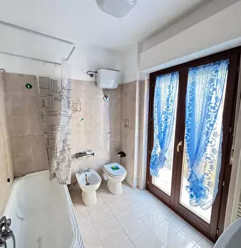Affittasi ampio appartamento disposto su due piani in zona residenziale completa di tutti i servizi. Al primo piano si trova la zona giorno composta da cucina, bagno e sala. Al secondo piano c'è la zona notte composta da tre camere e due bagni.