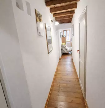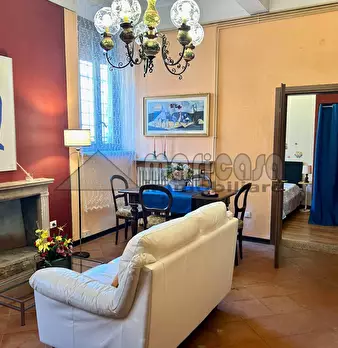 Appartamento arredato al piano terra, in affitto a Ferrara, in corso Porta Mare. Posto al piano terra in antico palazzo in pietra a vista, è composto da: ingresso nel soggiorno con camino, angolo cottura, camera matrimoniale con cabina armadio, b...
