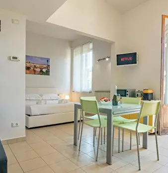 Benvenuti in questo luminoso open space che affaccia sul bellissimo giardino dell’Orticoltura. Troverai una cucina moderna e ben equipaggiata con piano cottura, microonde, macchina caffè Nespresso, Smart TV, tavolo da pranzo e molto altro. La zo...