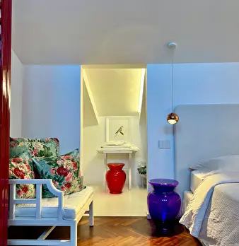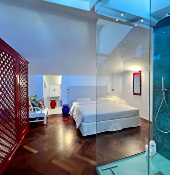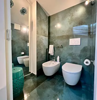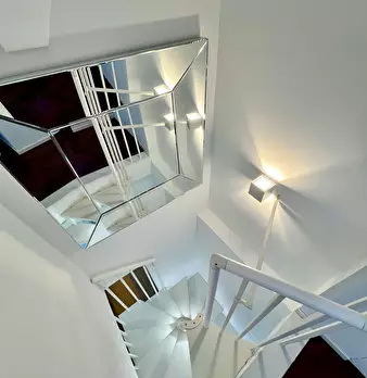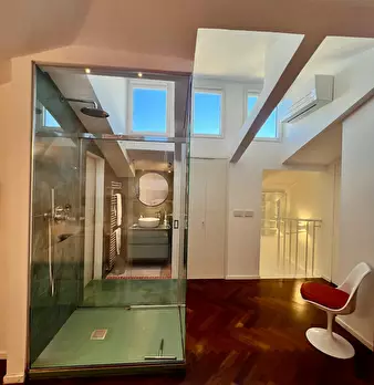 Benvenuti in un elegante appartamento su due livelli, situato al quarto e quinto piano di un moderno edificio in una zona tranquilla e ben ventilata – l’ideale per rilassarsi dopo una giornata di visite o lavoro. Al primo livello vi accoglie un so...