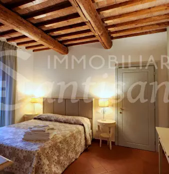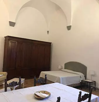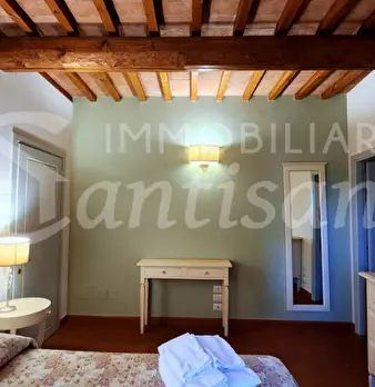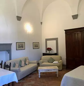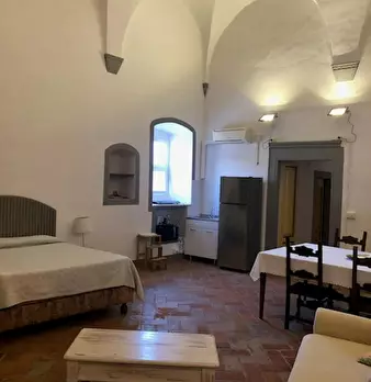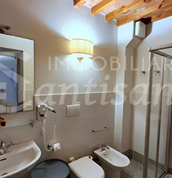 Ampio monolocale con arredamento di pregio in antica torre storica. Una ampia stanza unica, con due bagni. Dispone di cucinotto elettrico,frigo e lavandino. Nata sulla base di una vecchia torre difensiva posta a difesa del ponte sull'Arno, fu acqu...