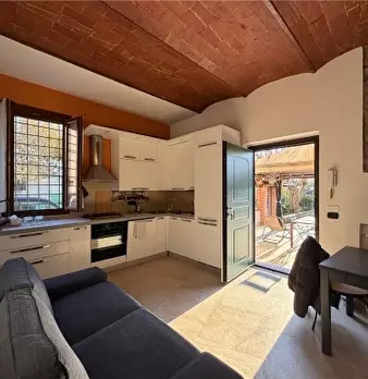 RIF.IMM.: AD0171 IN AFFITTO appartamento in Caratteristico villino a Scandicci con soggiorno cucina caminetto, 1 bagno di servizio al piano terra e al piano primo bagno grande con doccia e 1 camera matrimoniale con cameretta su soppalco con let...