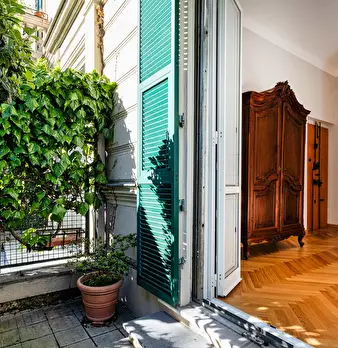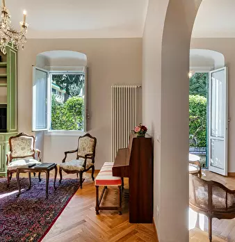 Charming and elegant apartment with garden, in the heart of the beautiful residential neighborhood of Albaro; close to the sea and convenient to reach the city center. The recently renovated accommodation consists of a small garden; an entrance h...