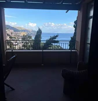 Incantevole appartamento a pochi passi dalla spiaggia di Taormina in località Mazzeo, primo piano interamente ristrutturato, climatizzato, Ingresso, soggiorno con ampio angolo cottura, camera singola, camera matrimoniale, servizio Wc e balcone.