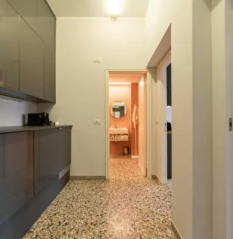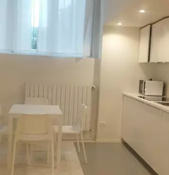Corvetto - Porto di Mare area 1 minute walk to Porto di Mare yellow line metro Large, finely furnished and recently renovated studio apartment located in basement inside a residential condominium. Entrance to living/sleeping area with open kitchen...