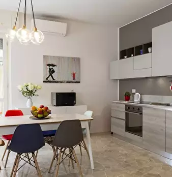 Scopri questo accogliente appartamento con una camera da letto situato nel quartiere Umbria-Molise. Completamente arredato e dotato di comfort essenziali, questo residence dispone di aria condizionata autonoma, riscaldamento centralizzato, lavatri...