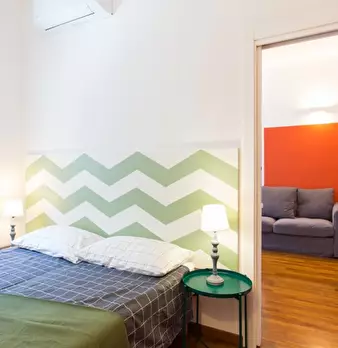 Appartamento con una camera da letto in affitto in Via Tito Vignoli. L'immobile si trova al 1° piano di un edificio dotato di ascensore. Completa la proprietà balcone, aria condizionata e divano letto.