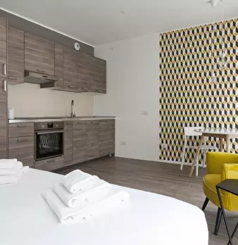 Luminoso e accogliente open space al 5° piano in una zona strategica della città, ben collegata alle principali attrazioni turistiche. La cucina è completa di stoviglie ed elettrodomestici: forno e frigorifero. La zona notte è composta da 1 camera...