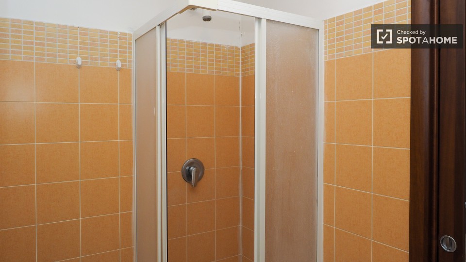 Questo appartamento con 2 camere da letto in affitto in Via Modena si trova al 1 ° piano. La porta d'ingresso si apre in un corridoio con le porte tutt'attorno. Direttamente a destra c'è il bagno. È uno spazio di dimensioni decenti con una finestr...
