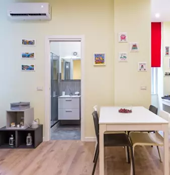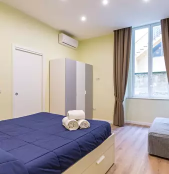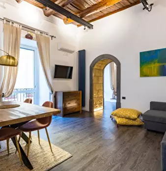 Scopri questo appartamento arredato con 2 camere da letto situato nei Quartieri Spagnoli di Napoli. L'appartamento dispone di aria condizionata centralizzata, TV e forno, offrendo comfort e praticità. Si prega di notare che non sono ammessi animal...