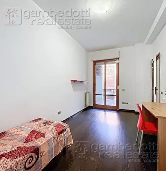 In affitto ad Urbino 3 camere in ampio appartamento in zona Ospedale, al piano rialzato. L'appartamento è composto da 2 camere doppie con terrazzo (180€ a posto letto oppure 290€ ad uso singola), una camera singola con terrazzo (260€), bagno con v...