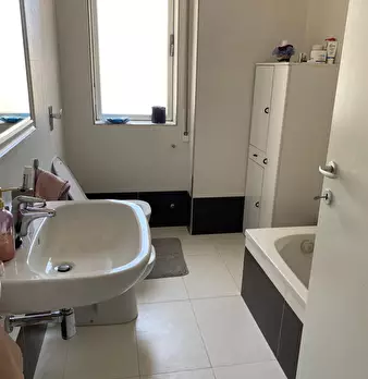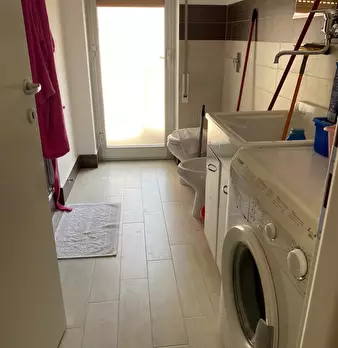 Appartamento sito al settimo piano. Ascensore. Ingresso, ampia cucina, due camere da letto, studio, soggiorno. Bagno e d.s.. Lavanderia al piano superiore con disponibilità di ampio terrazzo.Posto auto in garage condominiale condiviso. Solo refere...