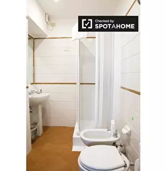 Questo appartamento arredato con 2 camere da letto a Trastevere, Roma, offre alloggi a professionisti e studenti in uno spazio completamente attrezzato. L'unità dispone di aria condizionata autonoma, lavatrice privata, TV e forno in cucina. Un bal...