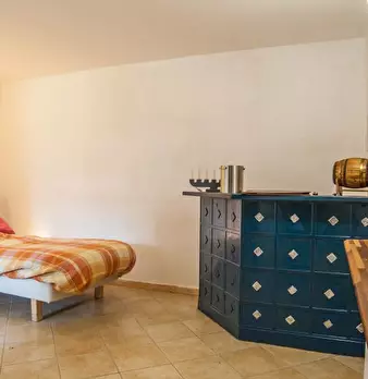 Questo luminoso appartamento con 1 camera da letto è disponibile per l'affitto a Selcetta, a Roma. La cucina è completamente attrezzata con posate e stoviglie e ha anche un fornello elettrico, un tavolo da pranzo e un divano. Il bagno ha un wc, la...