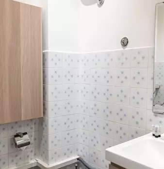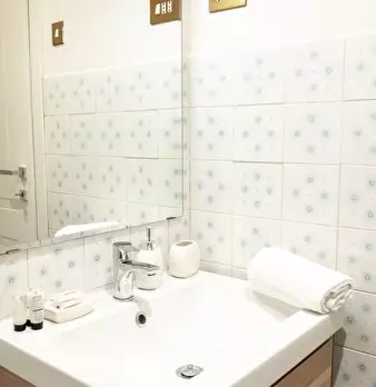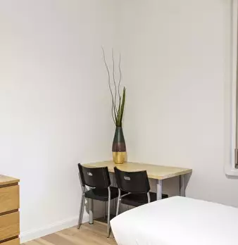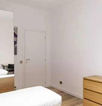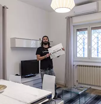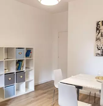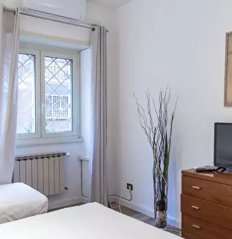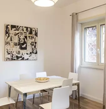 Questo luminoso appartamento con 2 camere da letto su Via Luigi Rizzo in Prati si sviluppa su 2 livelli e può ospitare fino a 3 inquilini. Al piano inferiore è una zona giorno in comune con un tavolo da pranzo e divano di fronte a una TV a schermo...