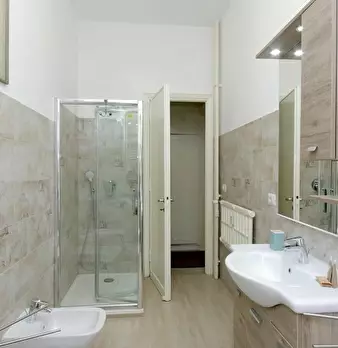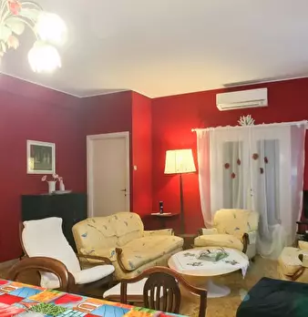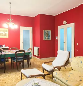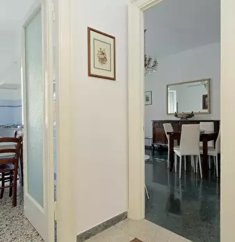 Questo appartamento molto confortevole e spazioso si trova al 1° piano. Entrando nell'appartamento si viene accolti da un ampio disimpegno dal quale si accede a tutte le altre stanze. A sinistra si ha il bagno e la camera da letto e a destra la zo...