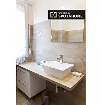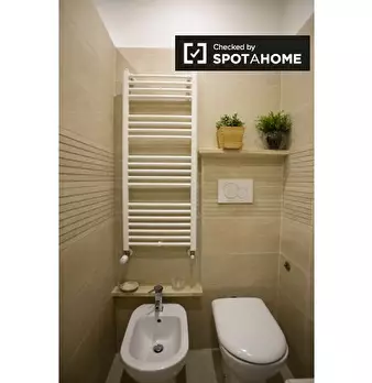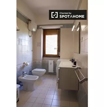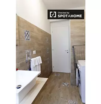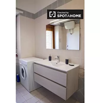Questo elegante appartamento con una camera da letto è disponibile per l'affitto nel tranquillo quartiere Portuense di Roma, con tutte le utenze incluse. Portuense è una zona residenziale verde a sud di Roma, con supermercati, parchi e altri servi...