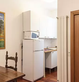 Questo appartamento con 1 camera da letto in affitto su Via Alessio Baldovinetti si trova al 4 ° piano. L'edificio ha un ascensore, quindi non è necessario salire le scale se non si desidera. Di fronte alla porta d'ingresso, troverete la cucina, i...