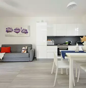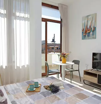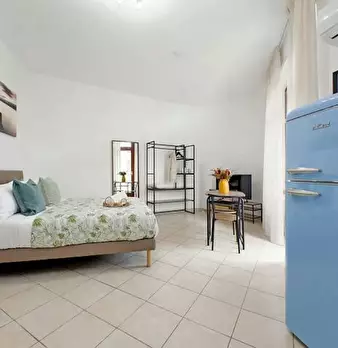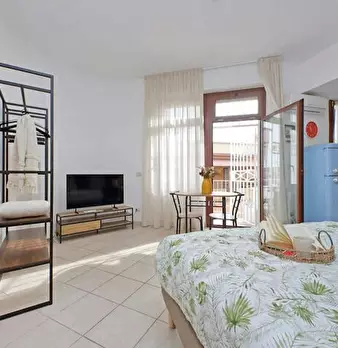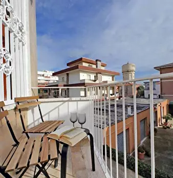 Bright modern suite in the heart of Fiumicino, in Piazza Giovanni Battista Grassi, overlooking the river from the balcony. It features a high-quality Memory Foam double bed, open kitchen with vintage fridge, Smart TV, fast Wi-Fi, air conditioning...
