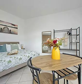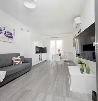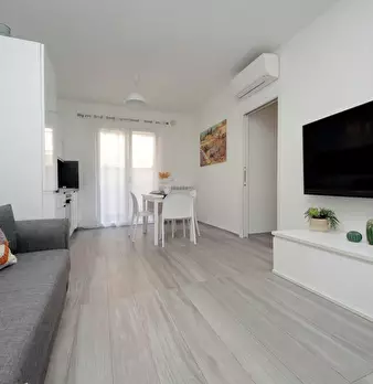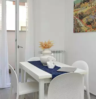 Spacious two-room apartment on the ground floor in a detached house in Fiumicino, just minutes from the airport and the city center. The apartment is equipped with ultra-fast WiFi, a fully equipped kitchen, a smart TV, and a comfortable outdoor s...