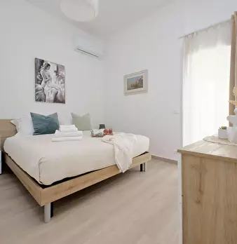 Large and comfortable first-floor apartment, furnished in a modern and functional style, located in a quiet but central area. Perfect for relaxing after a day of exploring. Includes air conditioning, Wi-Fi, a washing machine, and views of the cen...