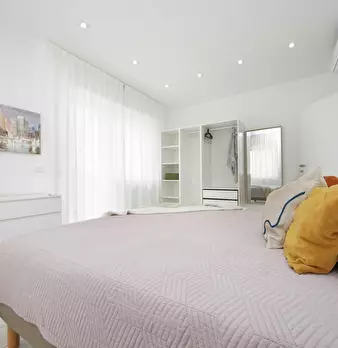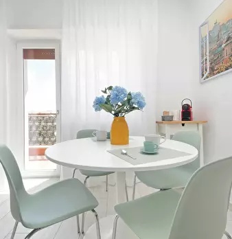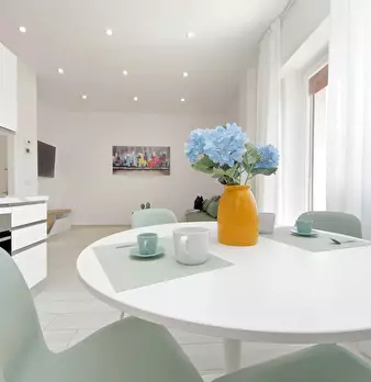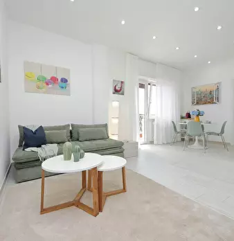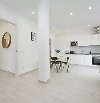 Recently renovated, this modern apartment of 76 sqm is furnished with taste and attention to detail. The entrance hall leads to the spacious living room with kitchen comprising a sitting area with sofa' and a dining area with an extendable table ...
