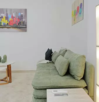 Suite in spacious penthouse on the top floor with balcony and elevator: air-conditioned double bedroom, bathroom with shower and washing machine, living room with sofa bed, equipped kitchen, and smart TV. The highlight is the large sunny terrace ...