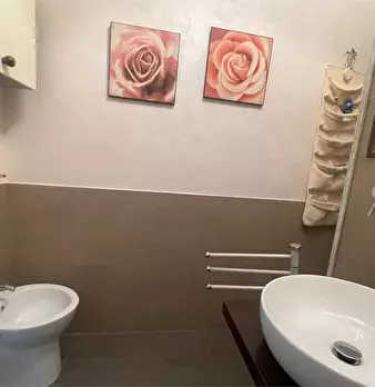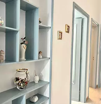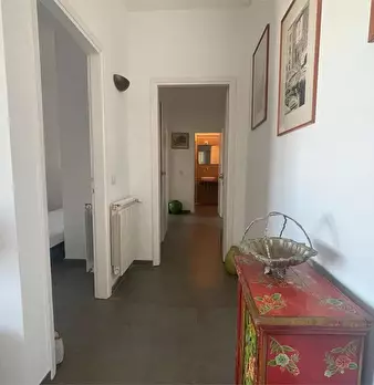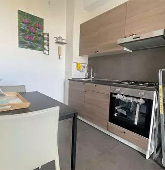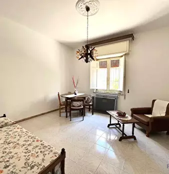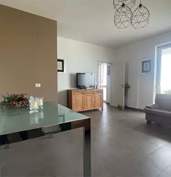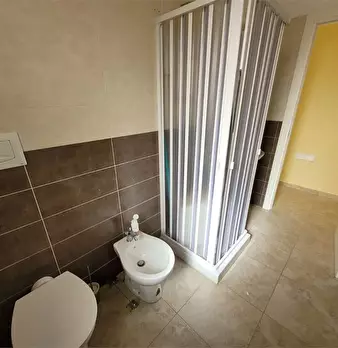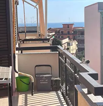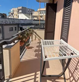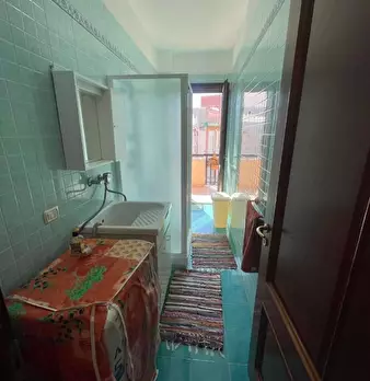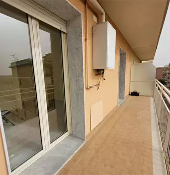 l'immobile ha ingresso sulla cucina soggiorno con accesso al balcone unico (che collega tutte le stanze), camera da letto con accesso al balcone, bagno con doccia e finestra, ripostiglio con finestra (solitamente adibito a cabina armadio a a camer...