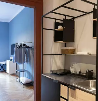 Studio San Michele by (hidden) Modern studio apartment in Piazza Cavour, in a central area of Turin, not far from the train station.. . This elegant loft is located on the ground floor and opens onto the living area equipped with a kitchenette w...