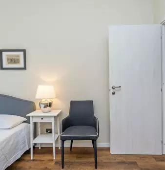 The apartment (very bright) is on the third floor (without lift) in the Mauriziano Hospital area, 2 bedrooms, large kitchen and bathroom with shower. The area is very quiet, with a large common garden and a shared parking. The rooms are clean, sp...