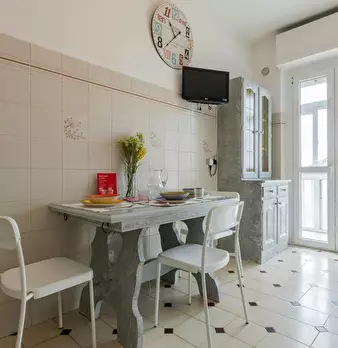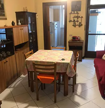 Appartamento con Vista by (hidden) Bright, partially renovated apartment located on the seventh floor of a building with an elevator. The entrance opens onto a hallway leading to a spacious kitchen, furnished in traditional style with a large di...