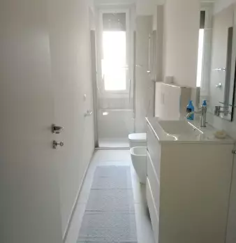 l'appartamento si trova in posizione centrale vicino alla stazione delle corriere, misura 130mq ed è composto da 2 camere, un bagno, cucina indipendente e salotto.