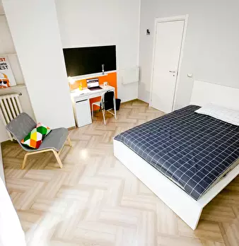 Zona POLITECNICO, posizione strategica e ricercata, affittiamo bellissima suite Simple Room ristrutturata appositamente per offrire comfort e comodità ai nostri studenti. La camera è dotata di letto matrimoniale, armadio a 3 ante, scrivania con co...