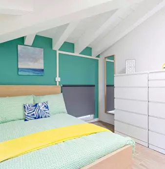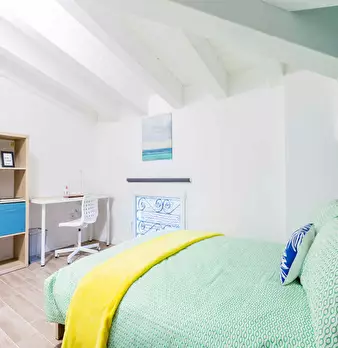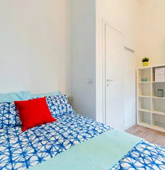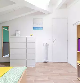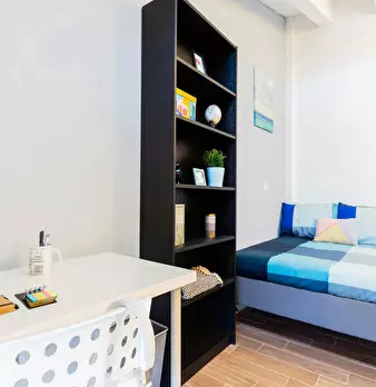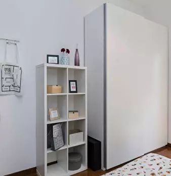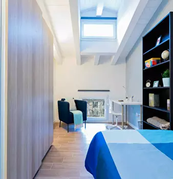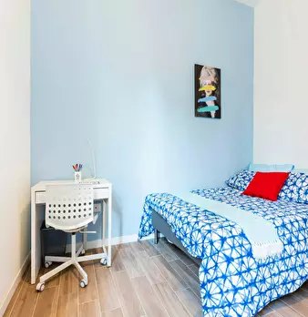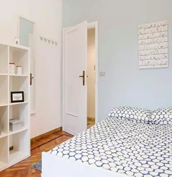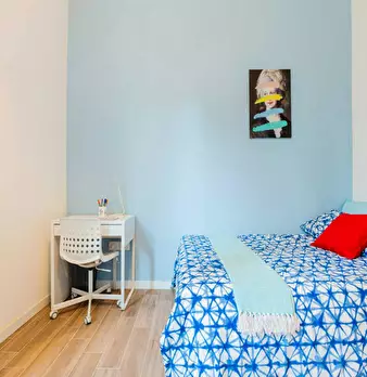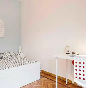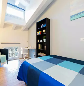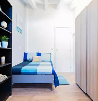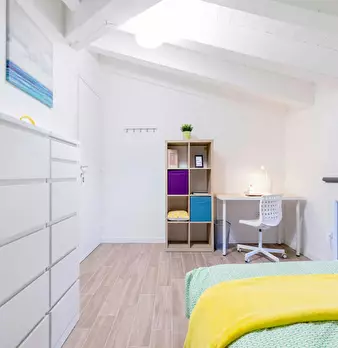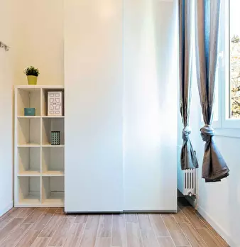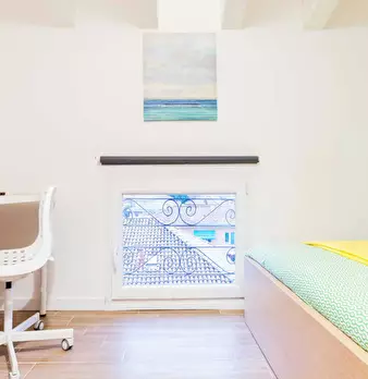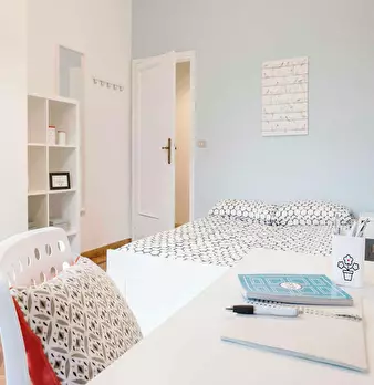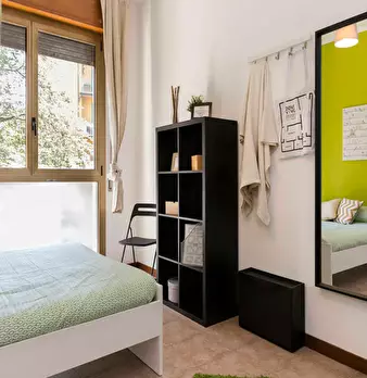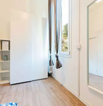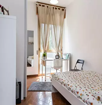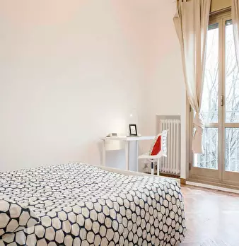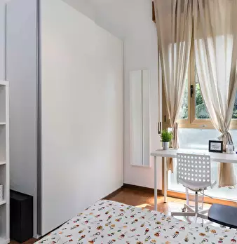 Discover this bright option in the Massarenti - Mazzini - San Vitale area, a convenient location close to university hubs and local life. Comfortable room with a queen size bed and 13.59 m2 of space, ideal for focused study or relaxing after class...