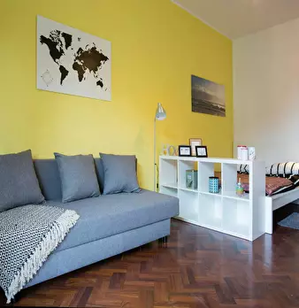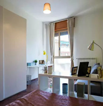Great and bright single room with beautiful modern design. The apartment has - a nice completely equipped kitchen with a veranda where you can have coffee. - a dining room for sharing moments with the other tenants, but away from the sleeping a...